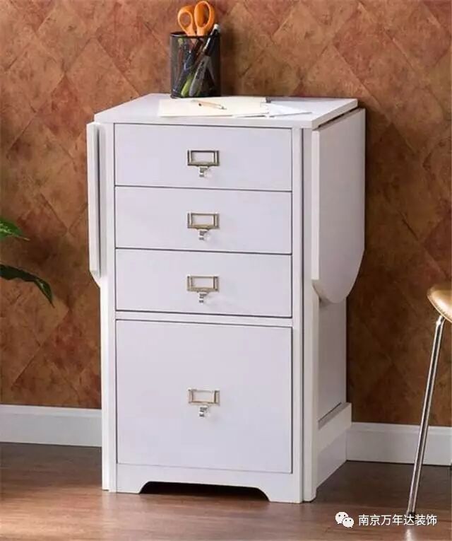 桌子除了可以贴墙放,还能贴着柜子哦,不用时折起来就行了。